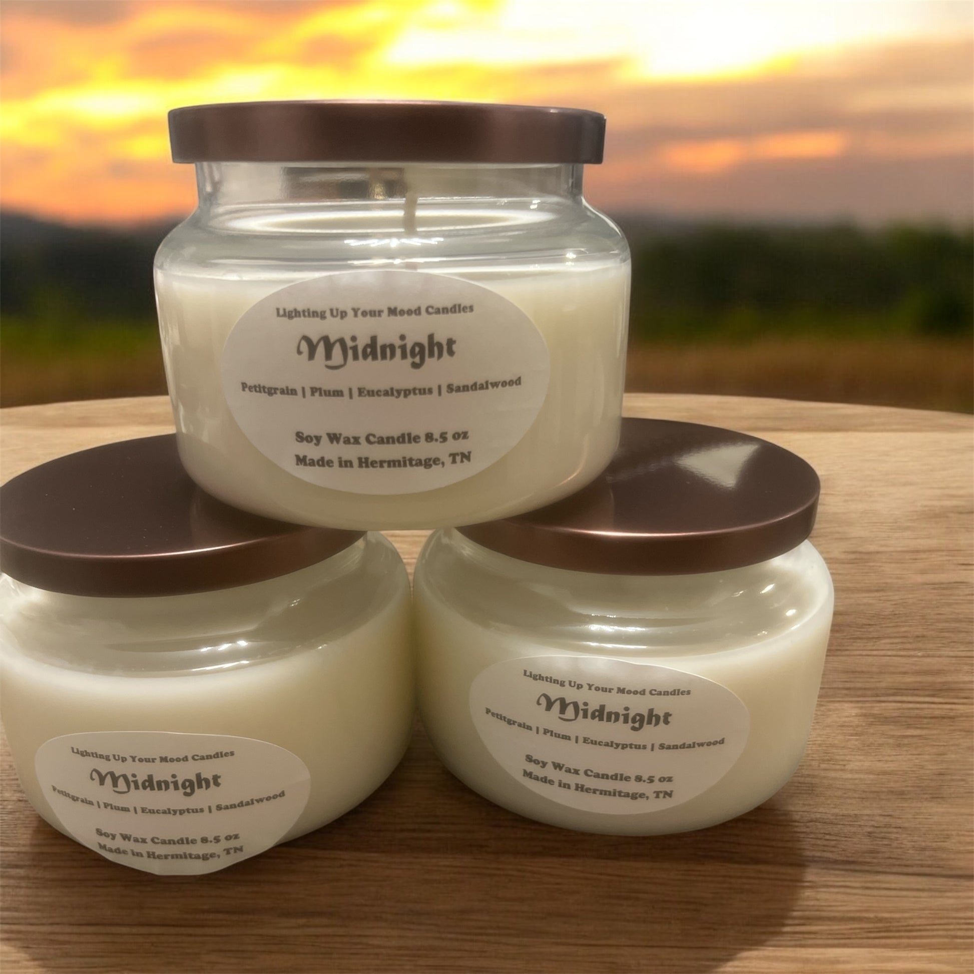 A hush falls over Nashville when the city’s skyline glows under a velvet sky—this is Midnight. Our luxury soy wax candle crafted to transform your space into an indulgent escape. Its rich, smoky depth lingers like whispered secrets in dim light, a moment suspended between now and forever. Warm woods, ink-dark incense, and a touch of black musk envelope you in secrecy and seduction.